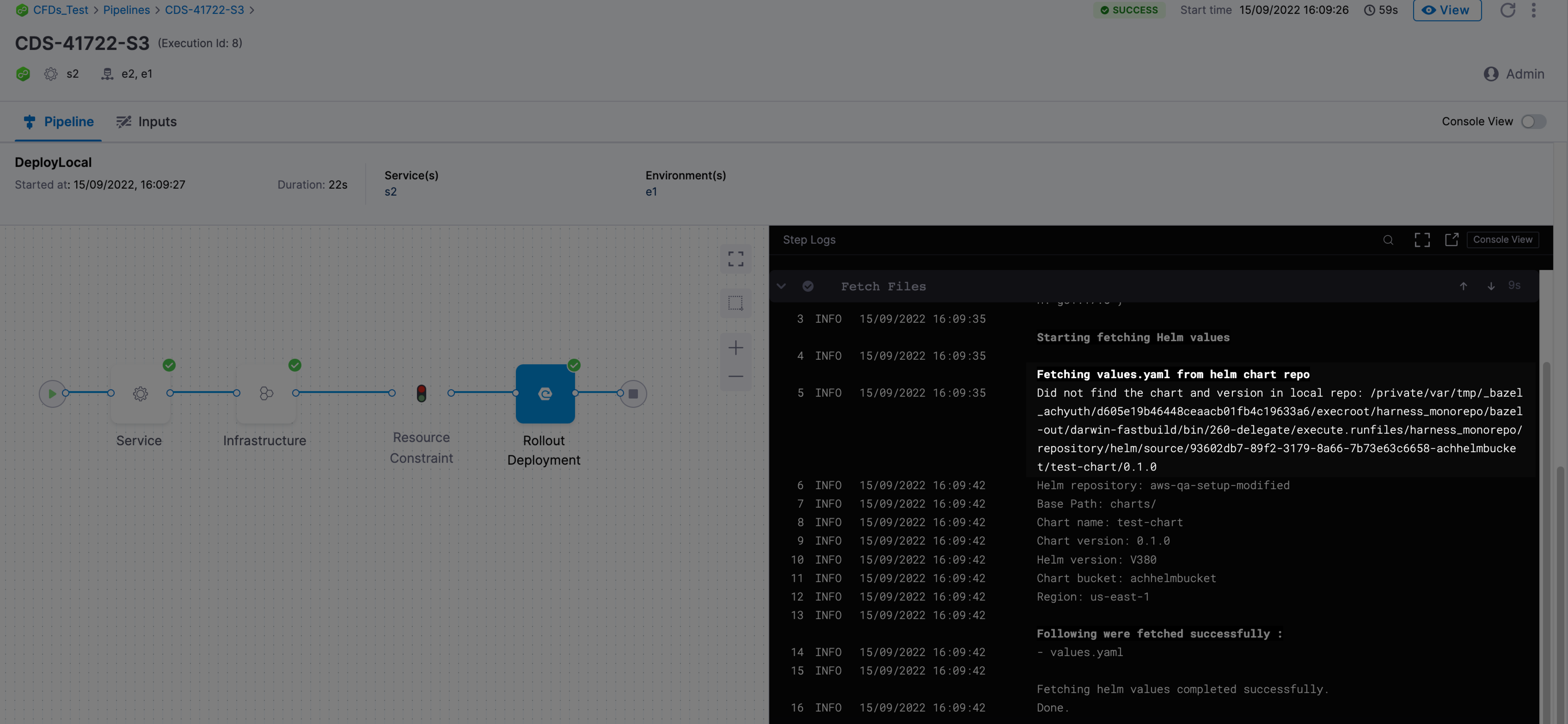 When Harness finds the charts it displays the message Found the chart at local repo at path