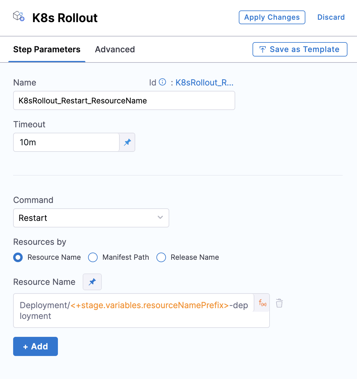 This topic describes the K8s Rollout step, which allows you to manage your Kubernetes Rolling Deployment. In Pipeline Studio, this step is labeled K8sRollout. On inspection, the step is labeled K8s Rollout.