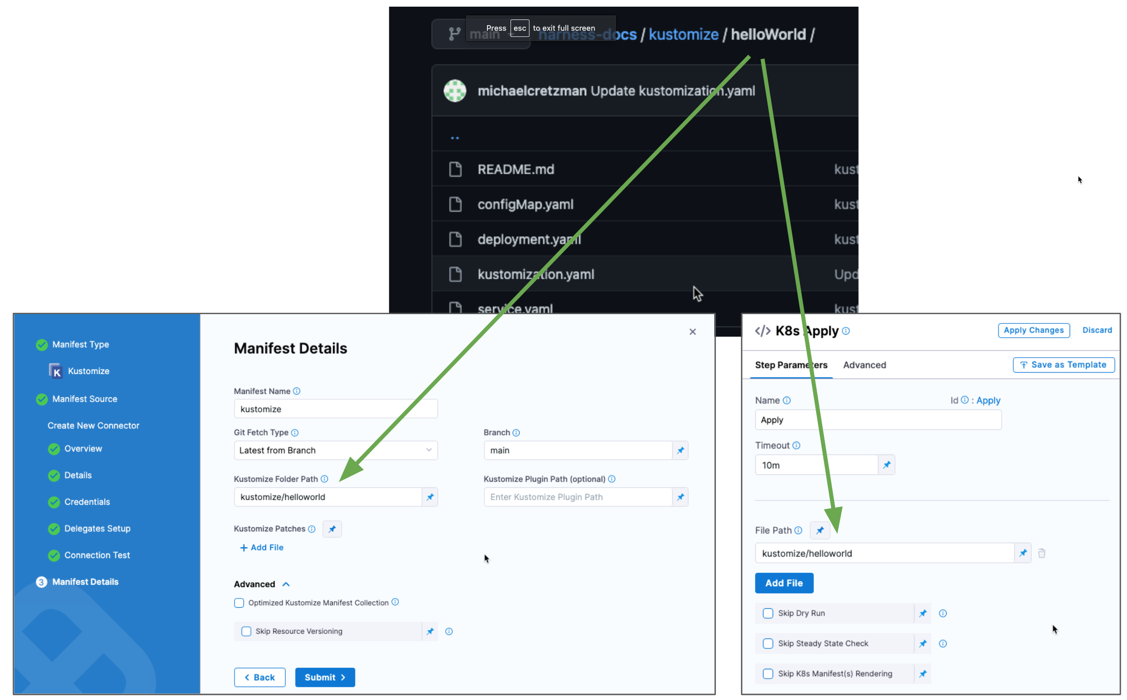 Here's a quick video showing you how to add Kustomize templates and Patches files in Harness. It covers other types like Helm Charts, also.