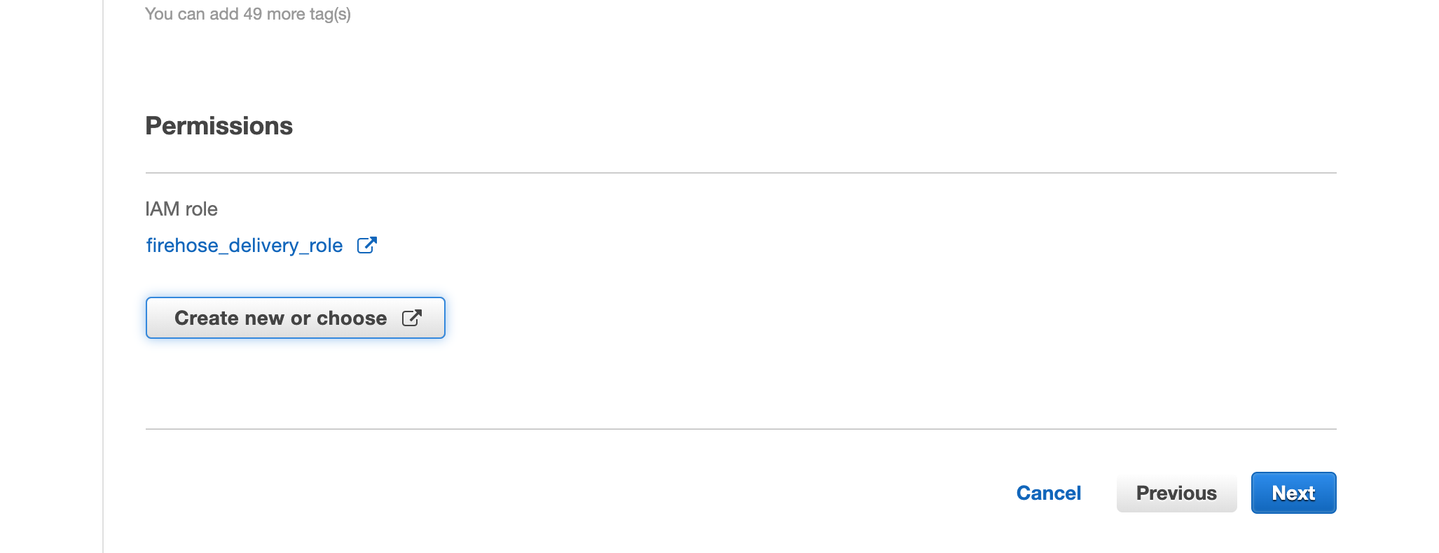 Select the IAM Role needed to access the service, consult with an AWS expert for more info, in this example, we used a role that has