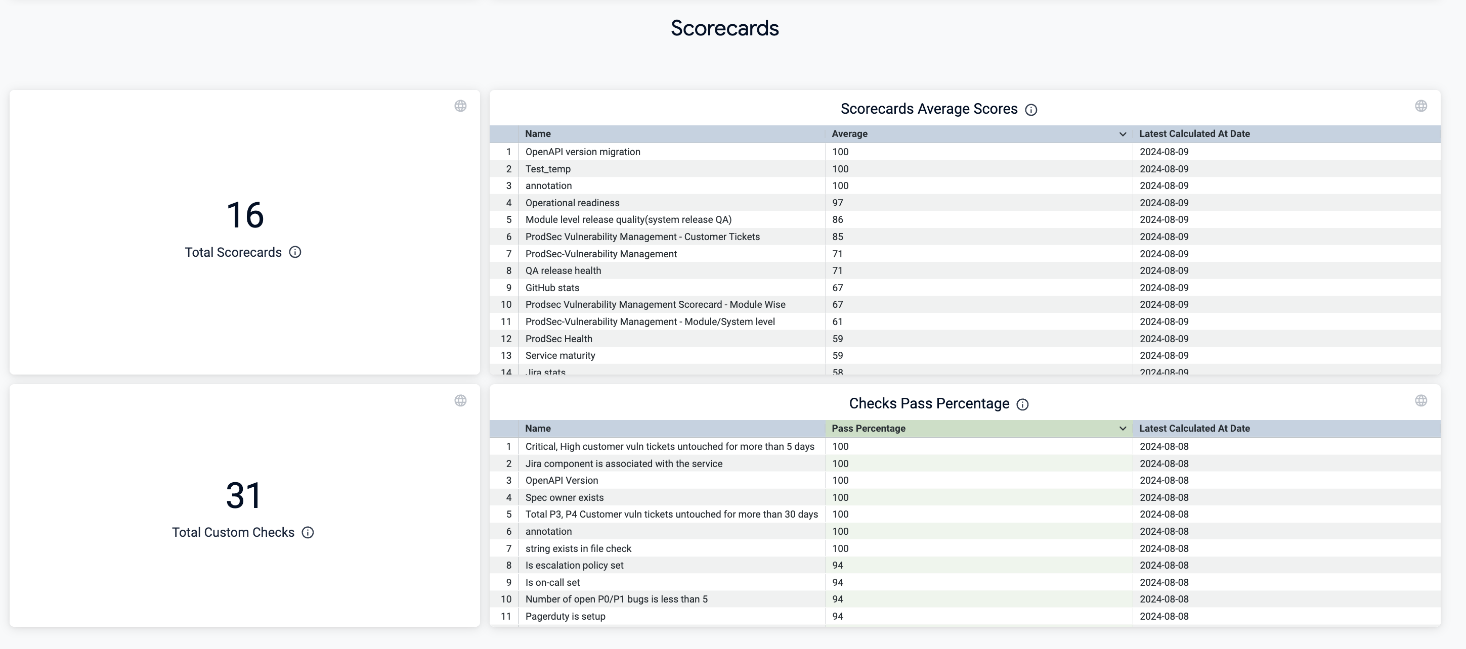 - Scorecards
